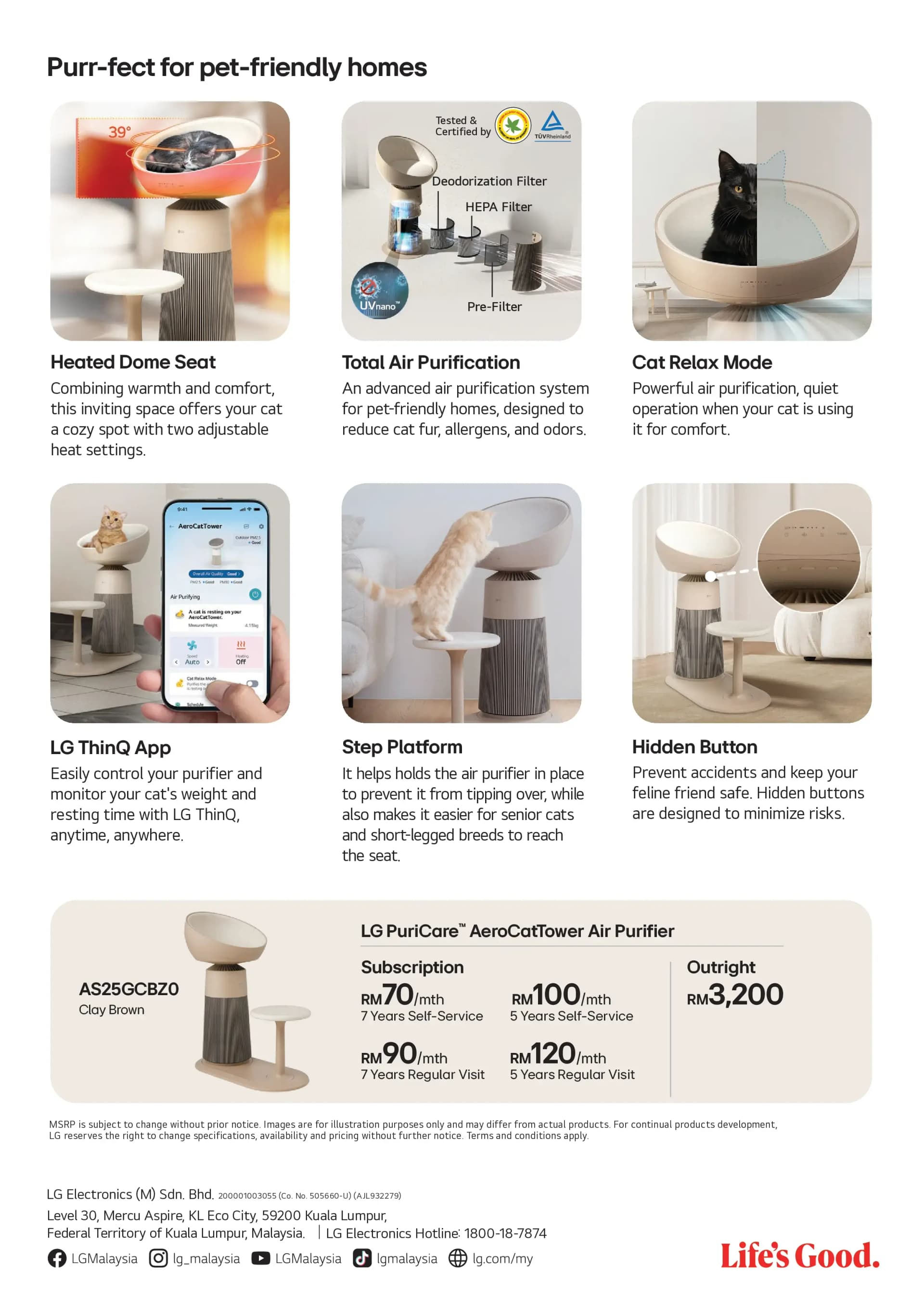 Advanced air purification designed to reduce cat fur, allergens, and odors.